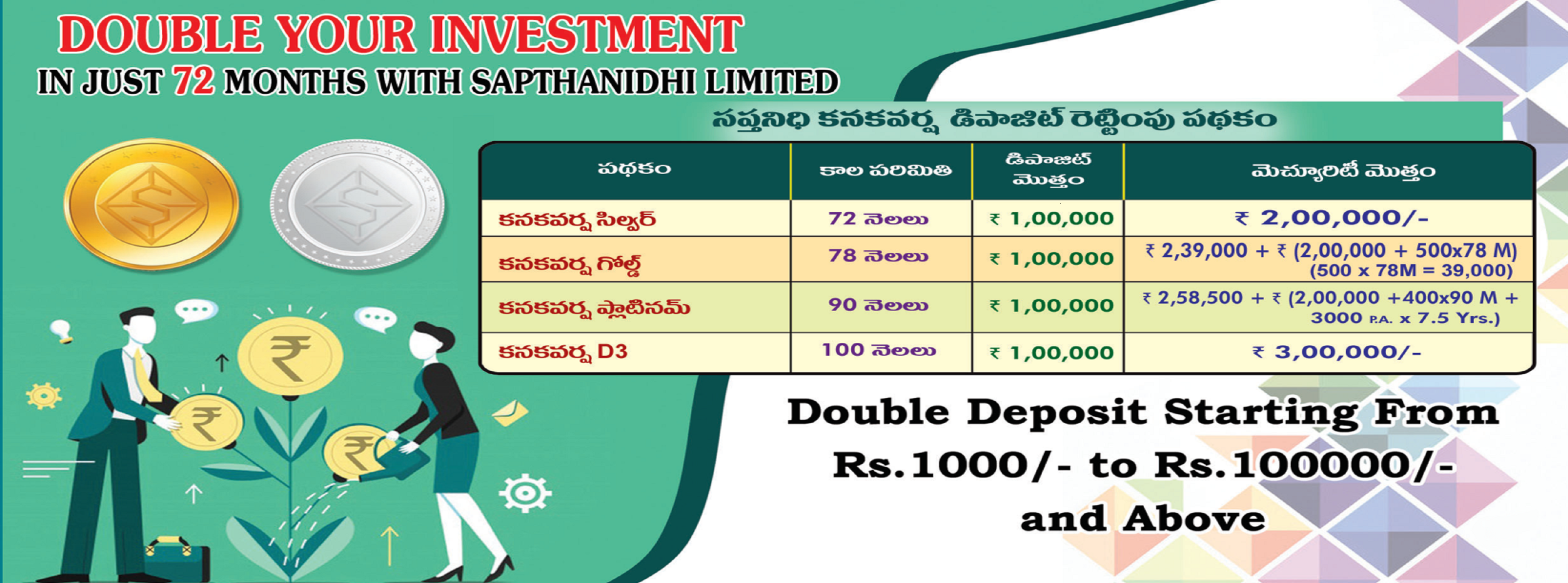 సప్త నిధి లిమిటెడ్ 08-10-2019న భీమవరంలో ముగ్గురు డైరెక్టర్ల బోర్డు, ఏడుగురు వాటాదారులు, అడ్వైజరీ ప్యానెల్ బోర్డు, ప్రొఫెషనల్ చార్టర్డ్ అకౌంటెడ్, కంపెనీ సెక్రటరీ మరియు లీగల్ అడ్వైజర్లతో స్థాపించబడింది. మా కంపెనీ నినాదం థింక్ ఫర్ కామన్స్. సాధారణ మరియు చిన్న వ్యాపారులకు సహాయం చేయడం, వారి వ్యాపారాన్ని ఆర్థికంగా అభివృద్ధి చేయడం మరియు వారి వ్యాపార అభివృద్ధిలో భాగస్వాములు చేయడం మరియు మహిళా గ్రూపు రుణాలు, బంగారు ఆభరణాలపై రుణాలు మరియు తనఖా రుణాల ద్వారా సభ్యుల ఆర్థిక అవసరాలను తీర్చడం మా ప్రధాన లక్ష్యం. ఇన్వెస్టర్లకు ఆకర్షణీయమైన వడ్డీ రేట్లను అందిస్తూ, వారి భవిష్యత్తు అవసరాల కోసం వివిధ రకాల పొదుపు పథకాలను అందిస్తూ, వారి ఆర్థిక అవసరాలకు అండగా నిలుస్తూ, సభ్యుల ద్వారం వద్ద బ్యాంకింగ్ సేవలను అందించే ఏకైక సంస్థ ఇది. ఒక శాఖగా ప్రారంభించి నాలుగు శాఖలకు విస్తరించడం mso) 4 సంవత్సరాల కాలంలో రూ. 20 కోట్లకు పైగా టర్నోవర్తో. మా బ్యాంక్ తన కస్టమర్లకు కోర్ బ్యాంకింగ్ (CBS) సేవలను అందిస్తోంది. భవిష్యత్తులో, మా ప్రధాన లక్ష్యం ఆంధ్రప్రదేశ్ అంతటా శాఖలను ఏర్పాటు చేయడం, నిరుద్యోగ యువతకు ప్రత్యక్షంగా మరియు పరోక్షంగా ఉపాధి కల్పించడం.